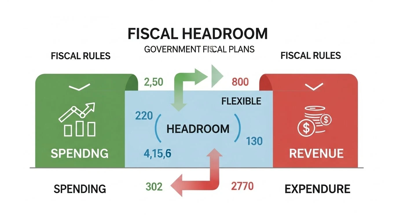 Fiscal headroom refers to the amount of flexibility a government has within its fiscal plan. Specifically, it indicates how much extra financial “room” is available for adjustments, whether in the form of increased government spending, tax cuts, or debt allowances, while still staying within predefined fiscal limits or targets. Essentially, fiscal headroom shows the buffer between projected government income and expenditure, determining how much the government can manoeuvre without breaching its financial rules.
